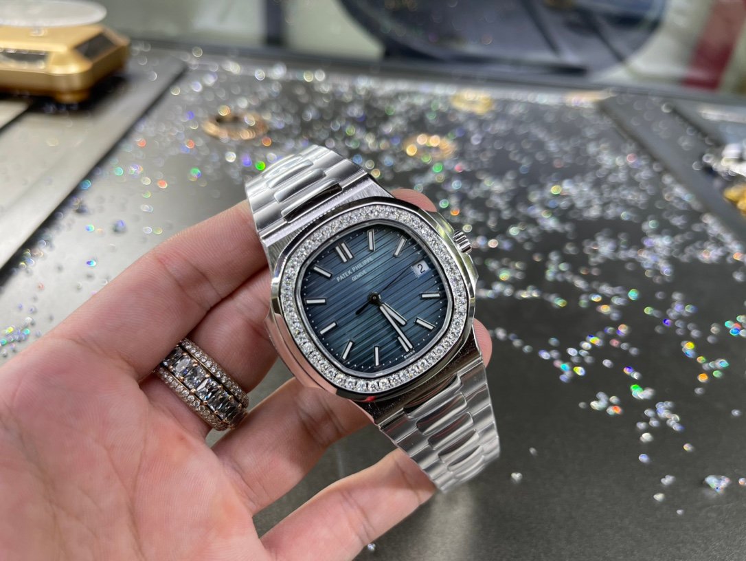 The whole watch is wrapped in 18K white gold, thick gold, shining with gold, details sharing