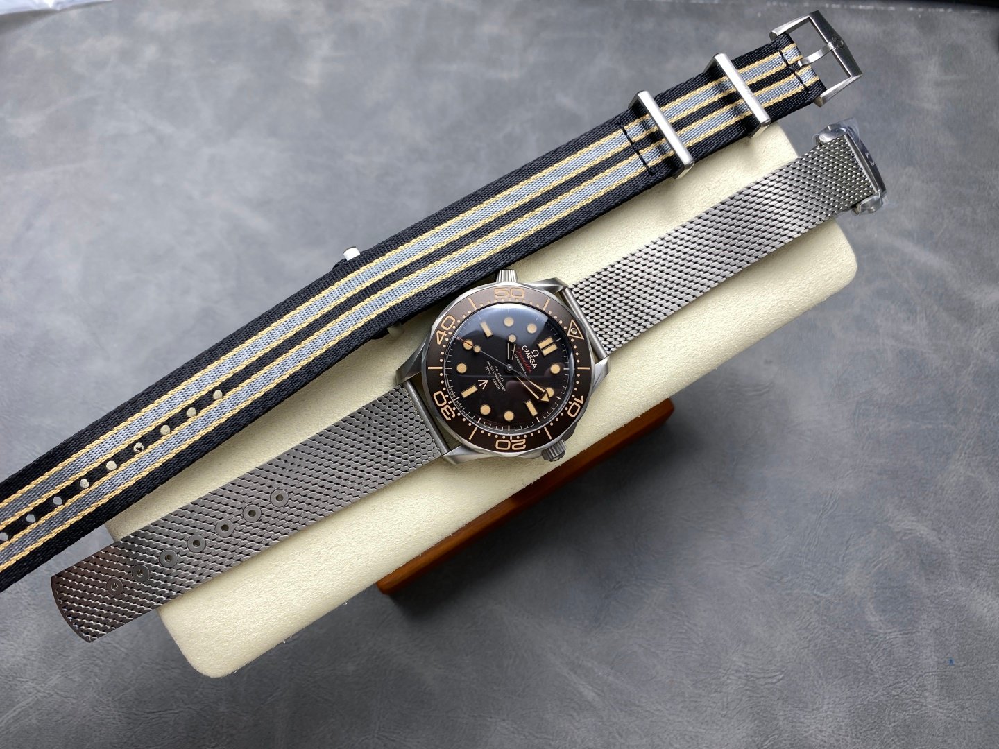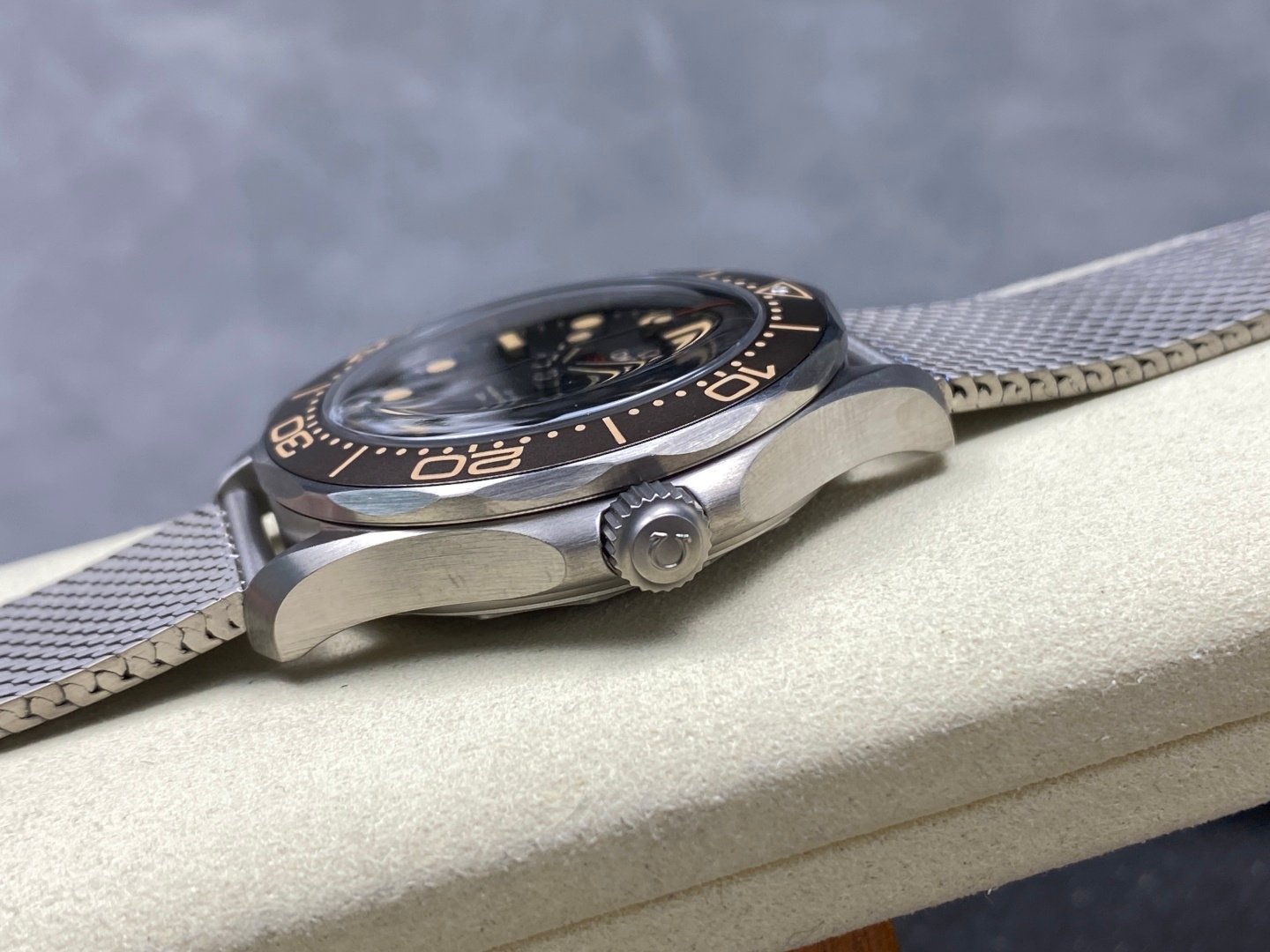No Time to Die Titanium 007 upgraded with a brand new titanium mesh strap weighing only 37.3 grams. It is known as the lightest titanium mesh strap on the Internet! Developed with the original mold and manufactured with the original craftsmanship. The whole watch is made of titanium and is light to wear. The quality and craftsmanship of a big factory. It is really important to choose the right version!