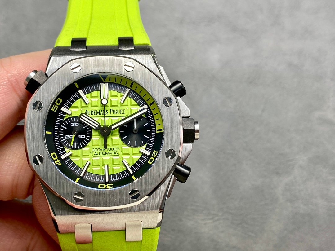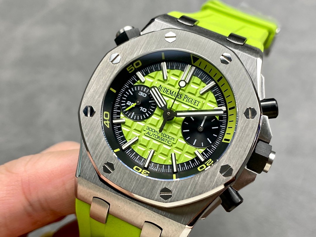 2. The dial has a well-arranged pattern with a strong three-dimensional sense. The thickness and length of the scale lines are consistent with the original. The bar nail hour markers are filled with super luminous materials. The two groups of small discs are symmetrically distributed, like two small eyes. There are circles of magnifying rings inside the disc, and the details are handled very well.