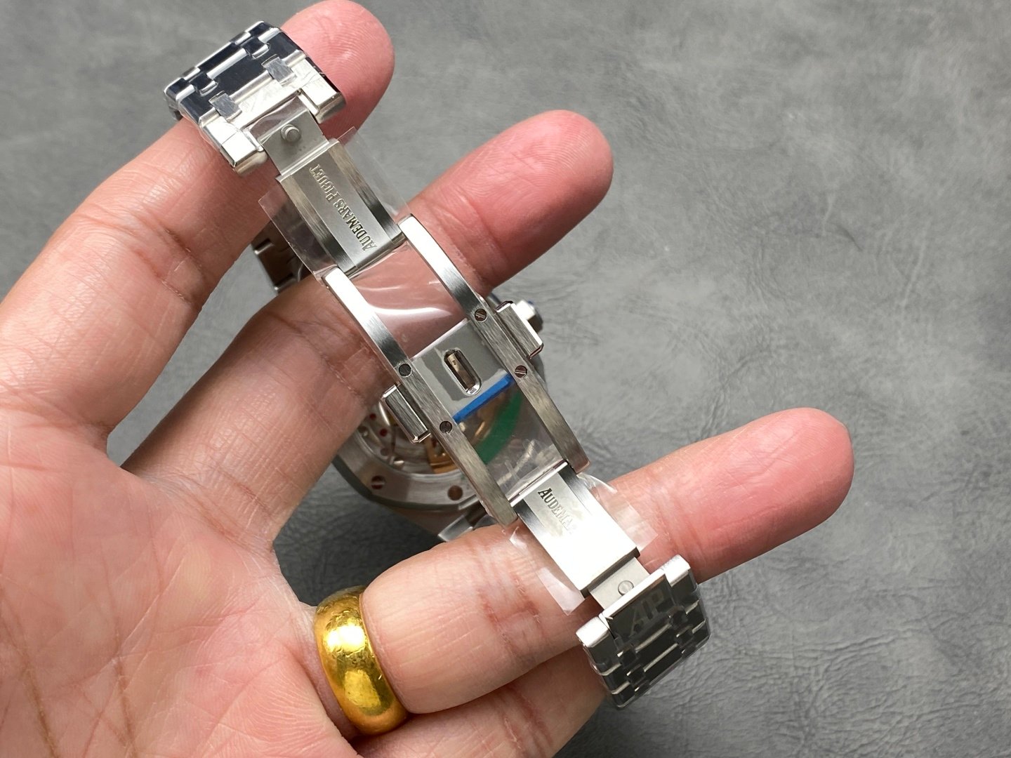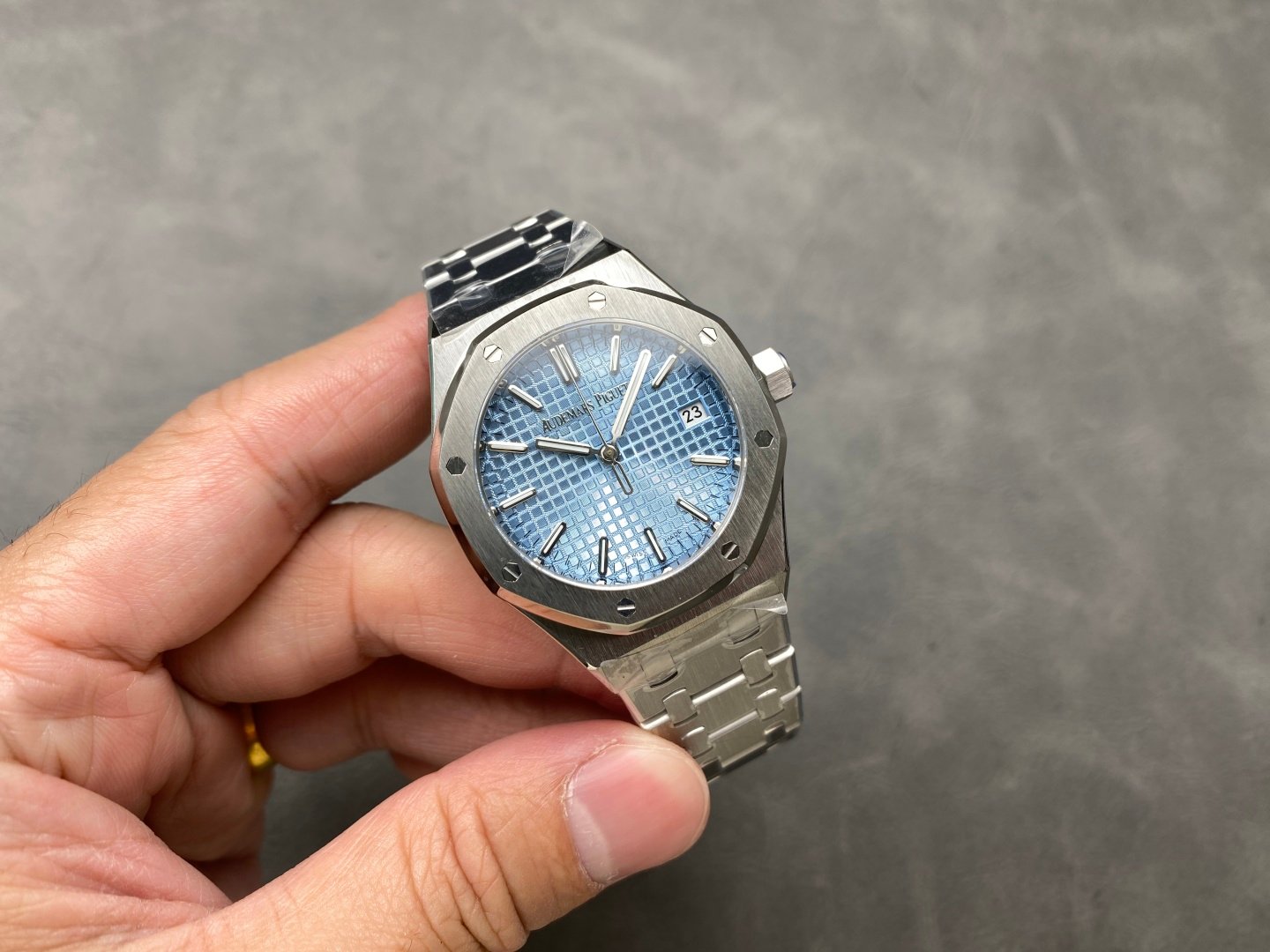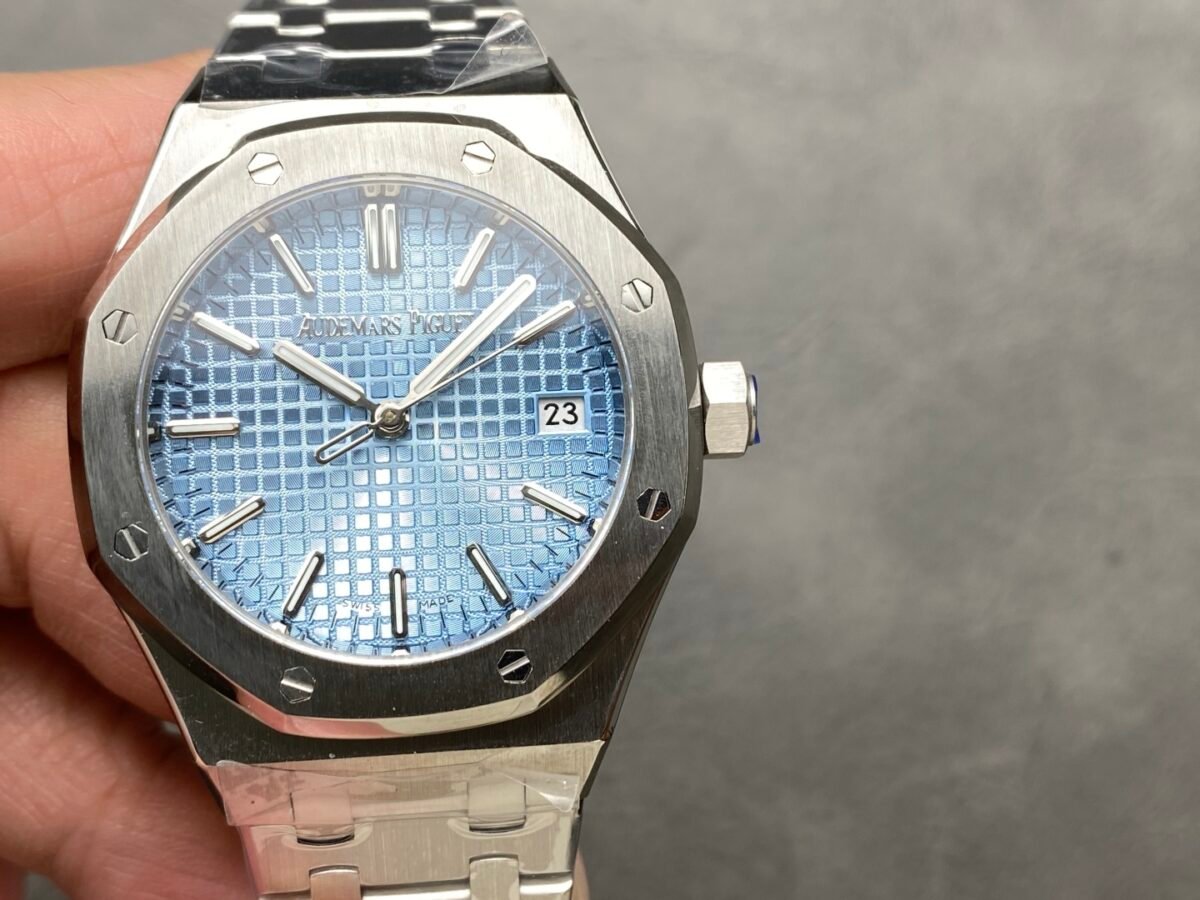 3. The lettering is still the unique square pattern, and the 24K gold three-dimensional “Audemars Piguet” logo at the 12 o’clock position is made by electroplating generation method (similar to 3D printing), replacing the previous three-dimensional “AP” logo and printed Audemars Piguet.