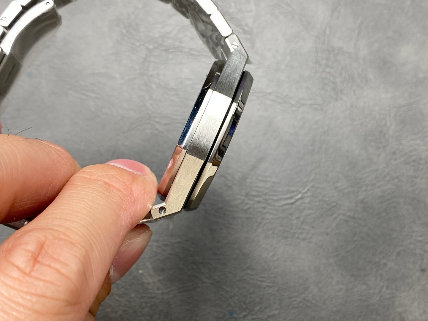 2. The new Ref. 15550ST continues to retain the original design of 1972, but a lot of fine-tuning designs are added to the case, dial and strap, mainly to increase the upper and lower bevels of the case, so that the overall proportion can be achieved better! On the other hand, the hand-made satin polishing of the watch is also enhanced, and the light and shadow effect that complements the bright polishing is stronger.