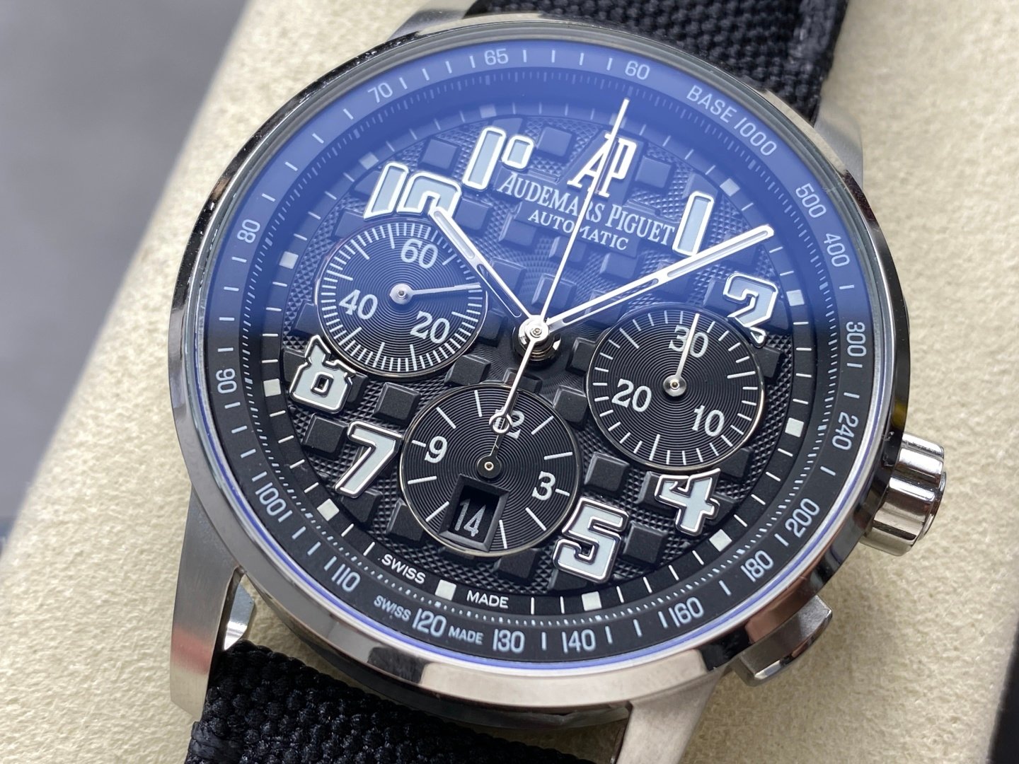 5. The strap is matched with imported Italian calfskin and canvas belt, the buckle is practical and original pin buckle, size 41mm, Audemars Piguet entry-level is highly recommended, exquisitely crafted