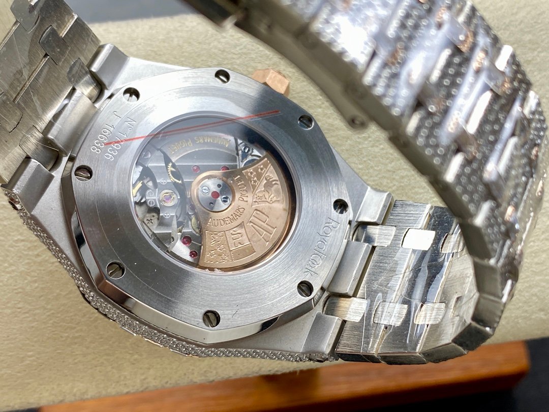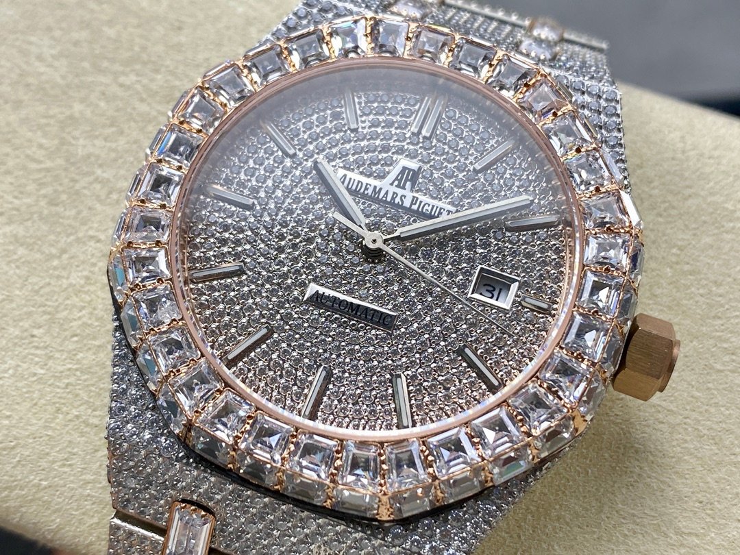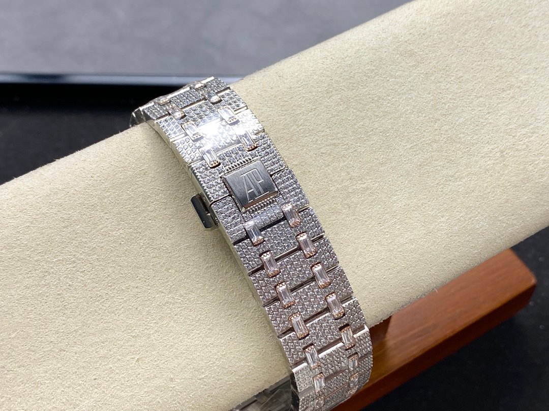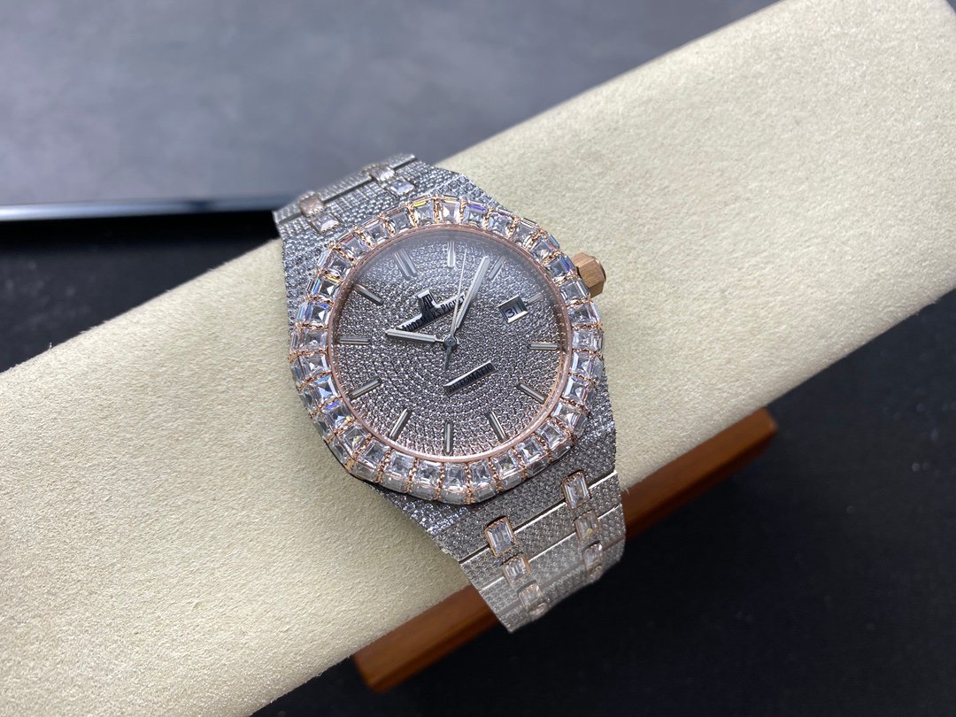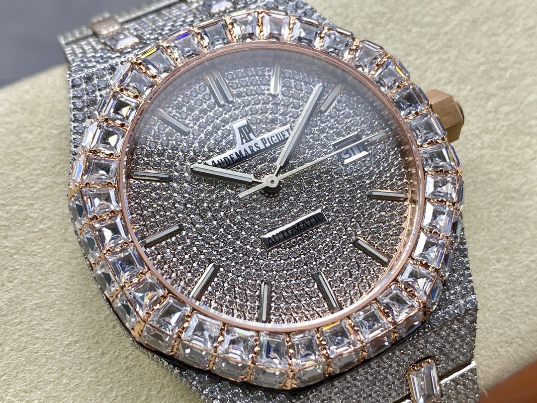 New bezel with square diamonds, fully automatic mechanical men’s watch, Royal Oak 15400 with 316L stainless steel case, all hand-set diamonds, ultra-luxury version.