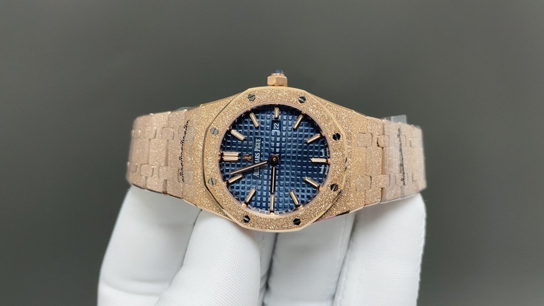 The watch has a sealed caseback with the Royal Oak series’ English name “Royal Oak” engraved on it. It is equipped with a Swiss F04111 quartz movement.