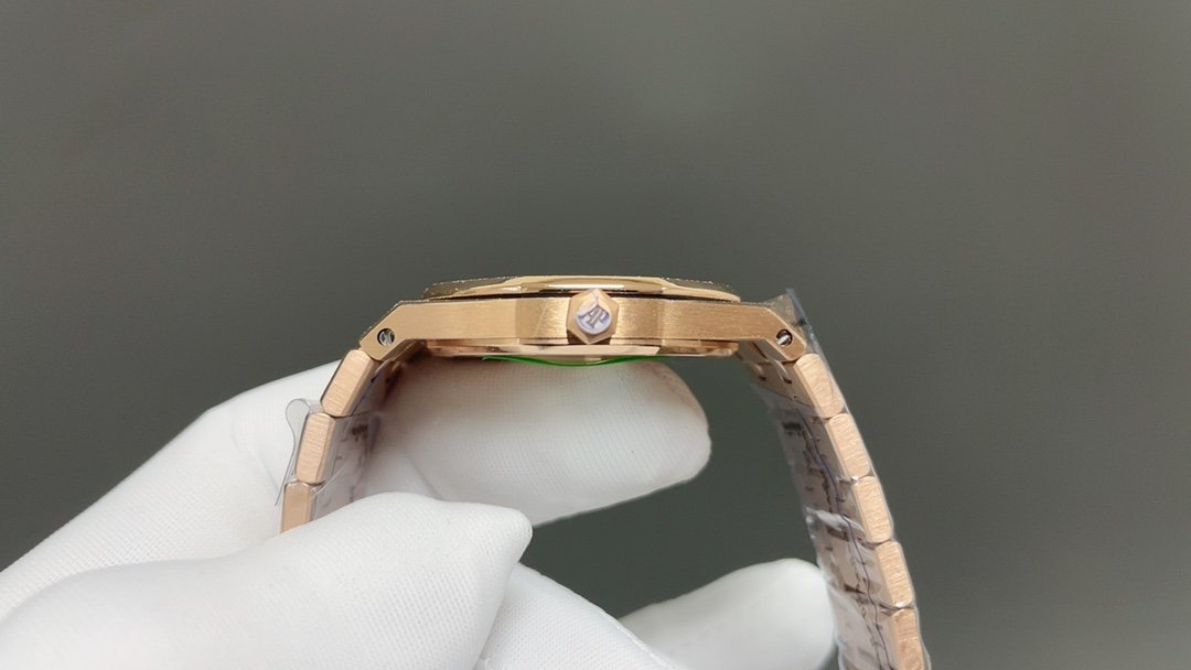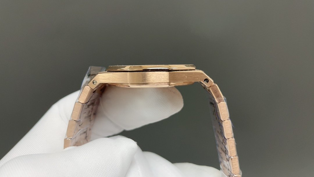 The genuine product is disassembled and molded, CNC polished throughout the process, and the version is adjusted many times, with clear edges and corners. The case diameter is 33MM, the polygonal bezel is precisely matched with the case, and the bezel is fixed to the case with hexagonal screws (the bezel is inlaid with exquisite Swarovski diamonds, which are dazzling). The strap links are exquisite and regular, and the links have been carefully polished hundreds of times to present a perfect texture. The folding clasp is easy to open and close and easy to wear. The watch lugs are bent to ensure that the watch fits the wrist better.