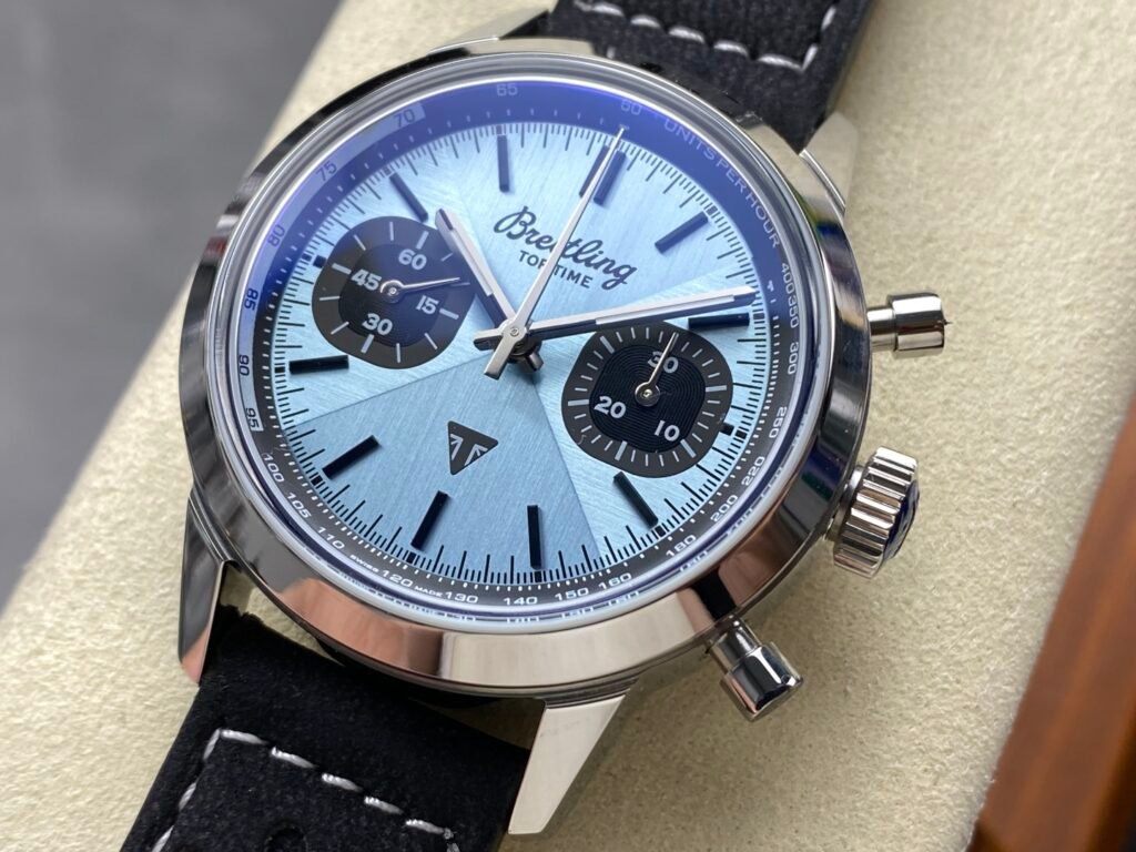 BLS new products V2 series exclusive B01 automatic mechanical movement Breitling B01 Chronograph (folding clasp) TOP TIME series color chronograph (Navitimer) Breitling reinterprets classic watches with bold colors. The size is 42mm, and the iteration is undoubtedly an authentic unique chronograph watch with a unique cover surface. It uses a 316 stainless steel bezel for easy grip and effectively protects the double-sided anti-glare sapphire mirror. The dial is available in black, blue and white, all decorated with large luminous hands and hour markers. Movement: The exclusive B01 automatic mechanical movement is perfect in workmanship. Welcome to taste it.