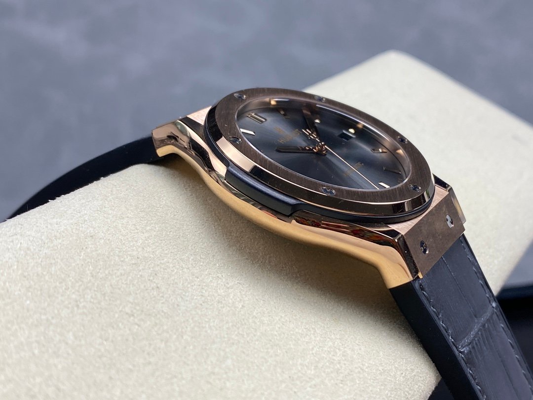 Hublot Classic Fusion 42mm case is finely polished and white. The bevel polishing arc chamfer is consistent with the original. The lettering is basically the same as the original under various normal light comparison