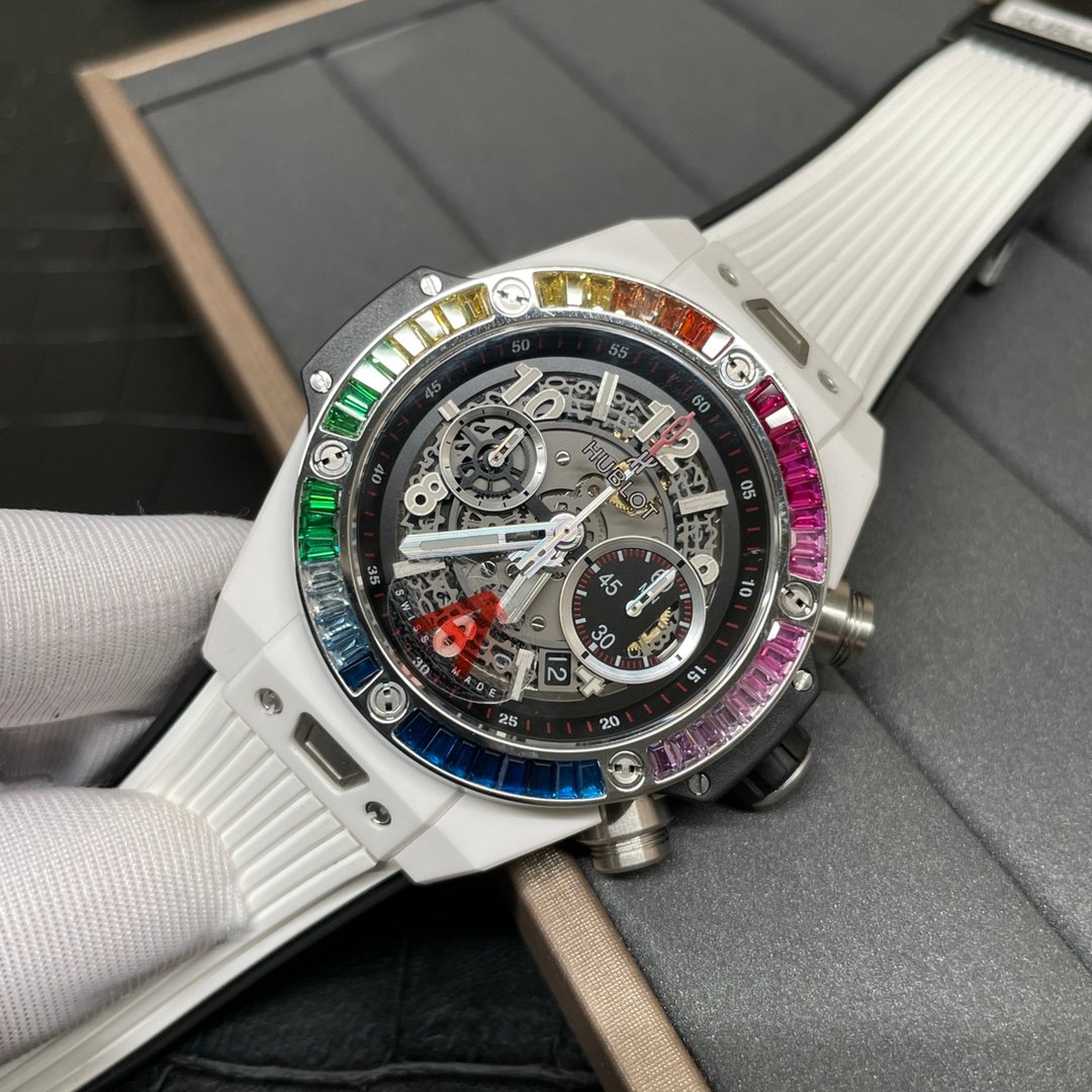 Hublot watch white ceramic rainbow diamond