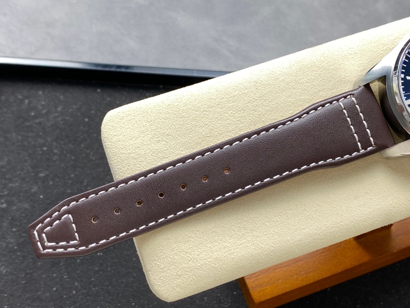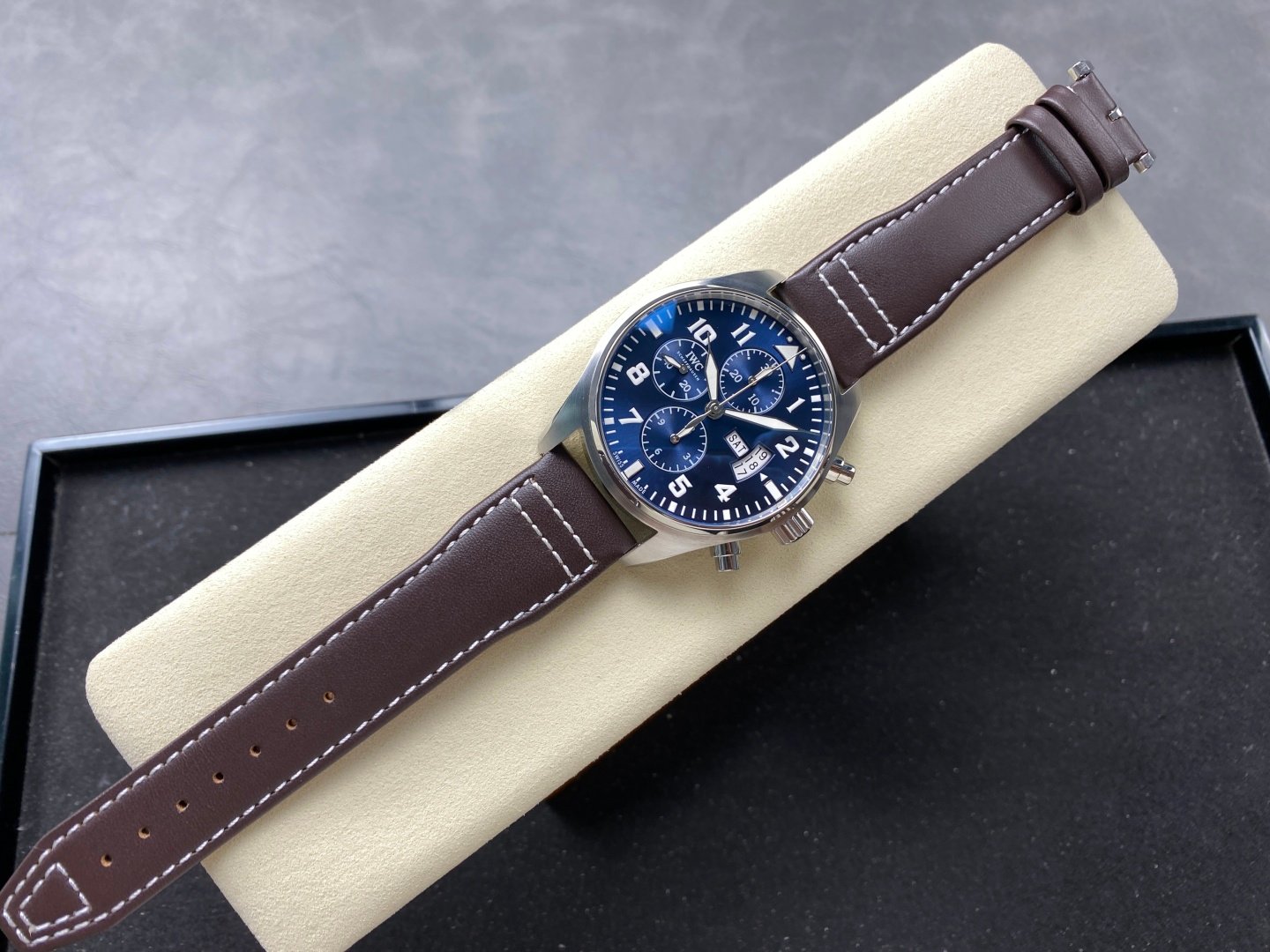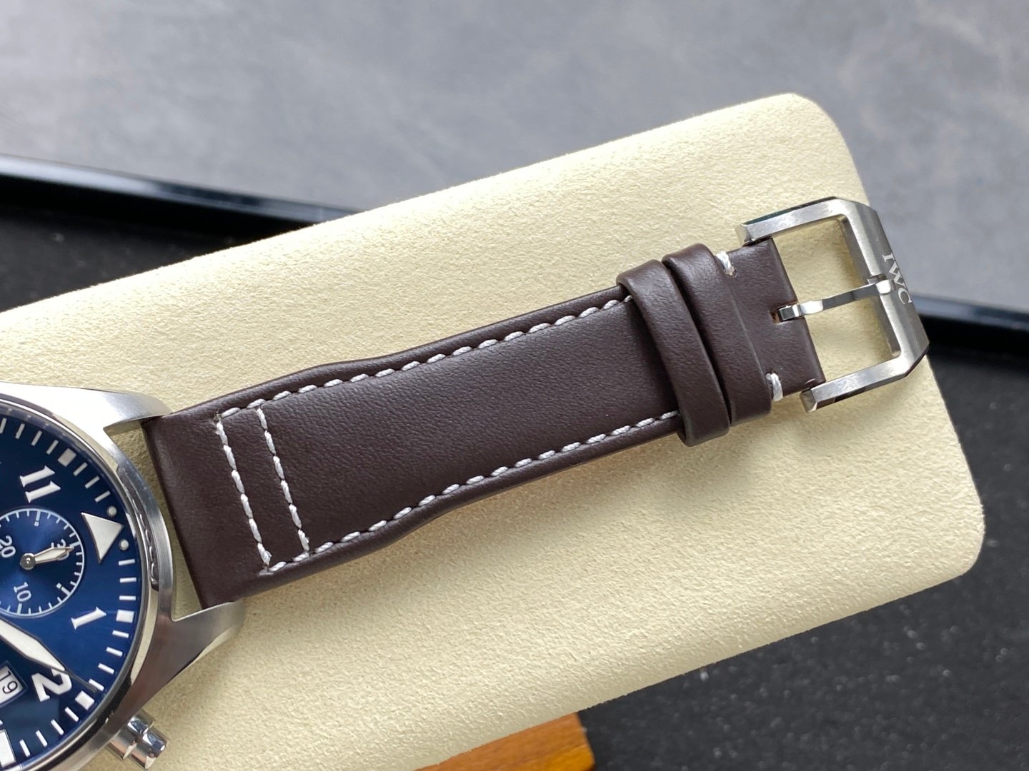 The watch is made of rose gold-plated high-tech, mature workmanship, clear lines and rich three-dimensional sense, harmonious color matching, very versatile. Compared with the previous pilot, the size of the new timepiece has been upgraded to 43m, which is more in line with the golden size of modern men’s watches! The dial design continues the classic cockpit instrument panel style of the pilot. The combination of green and red gold makes the watch look brand new and luxurious.
