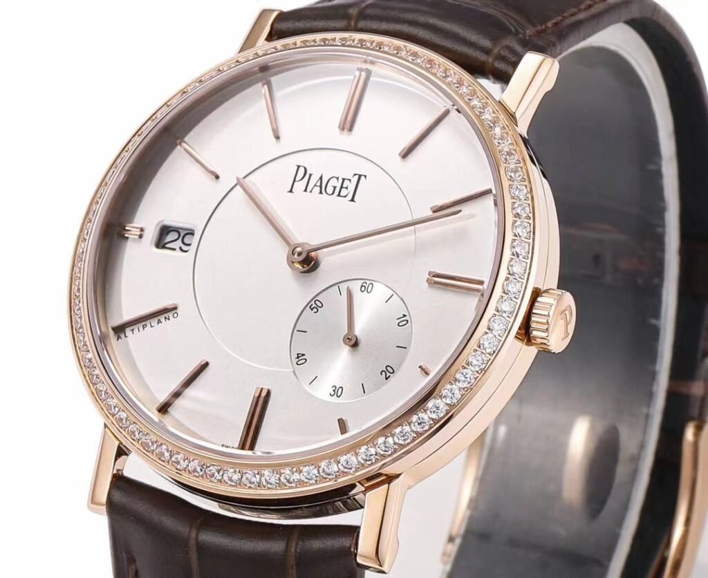 New Piaget Altiplano Origin watch, model GOA45403, with a diameter of 40 mm, combines fashion and classic style with exquisite ultra-thin watchmaking technology to become your loyal companion. The men’s high-end watch is equipped with the 1205P1 movement, setting a double world record. The complex functions of this Altiplano ultra-thin watch use the concept of micro-rotor and are equipped with a 3 mm movement. The total thickness of this watch is only 10 mm, which is an ultra-thin design among similar watches, which is amazing. The dial is equipped with baton-shaped hour markers and classic cowhide, adding elegance and charm to the exquisite craftsmanship. The hour markers are arranged alternately on the double-layer structure dial, the small second hand is at 4 o’clock, and the date display is at 9 o’clock. This ultra-thin men’s watch exudes elegance, embodies the spirit of courage to break through, and shows the fusion of watchmaking skills and aesthetic traditions! Please look for exclusive quality! [Rose]