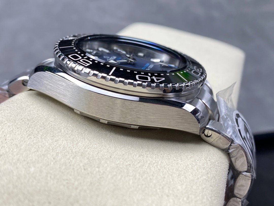 The overall design style and proportions are in line with the Ocean 600 of that year. The slightly raised conical sapphire watch mirror design can better withstand water pressure, and swimming and ordinary diving are completely stress-free! The ceramic bezel uses liquid metal filling technology, a unique design in the industry, and the physical texture will definitely make you love it! All the filling parts of the pointers and scale hour markers have super luminous display, you are the most dazzling star in the dark! The size of the entire watch is 45.5×18 mm. Thanks to the various layered designs on the bezel, case and bottom cover, the entire watch does not look as heavy as imagined from the side. In order to achieve stronger waterproofness, the screw-in bottom cover does not have a back-transparent design. The back cover is laser-printed with a never-fading Poseidon pattern according to different models. The strap has added ergonomic design, and the buckle can be fine-tuned. The entire watch is cast in the original mold, full of details.