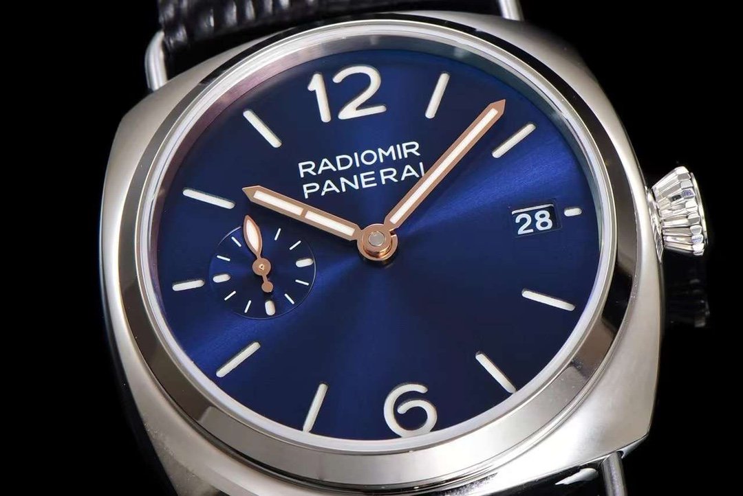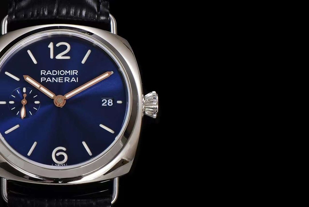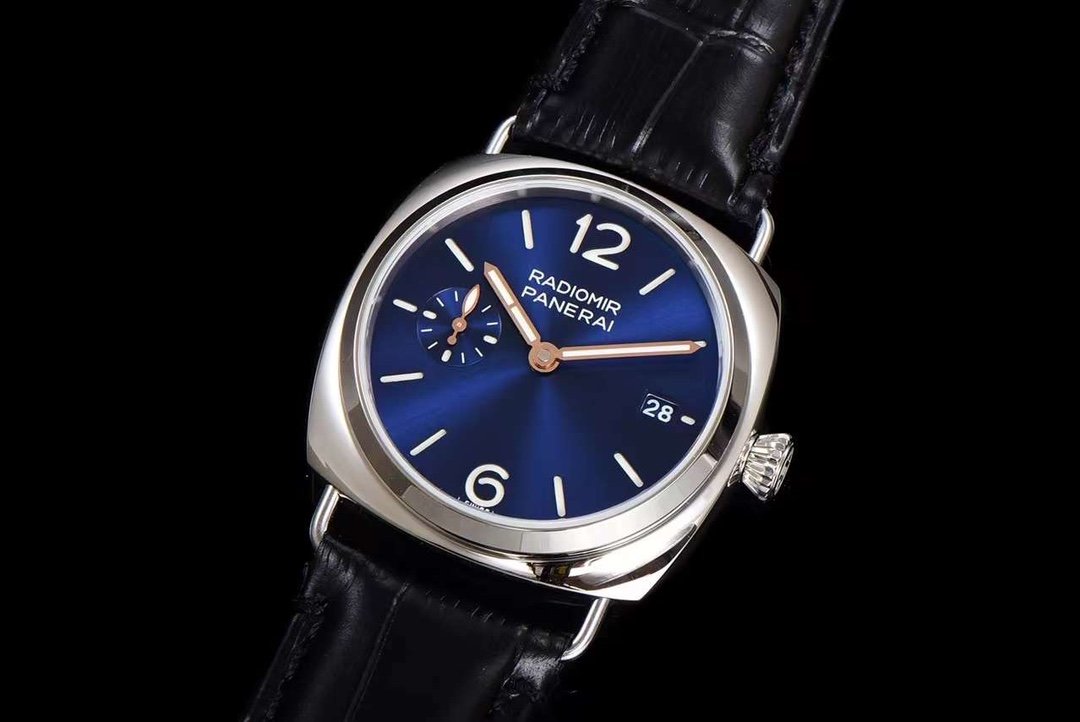 Radel series watch, stainless steel case with Italian imported calfskin strap, sapphire crystal glass, Arabic numeral dial, bar hour markers, luminous display.