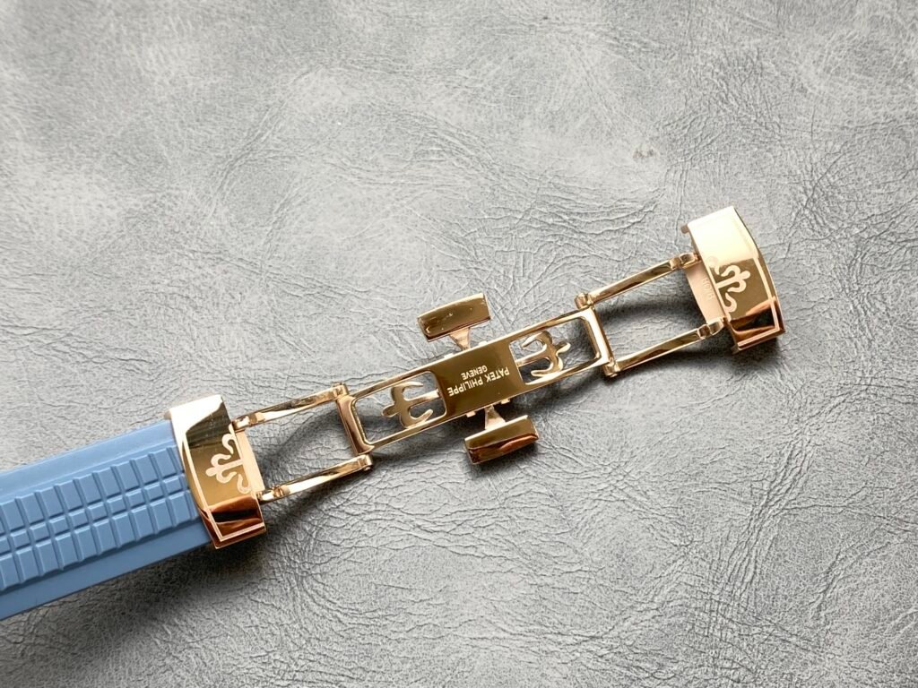 The gray-blue tape is not only extremely comfortable to wear, but also highly wear-resistant. At the same time, it is embellished with Aquanaut patterns, which complement the dial decoration. It is equipped with a folding clasp, adding a “casual elegance” style!