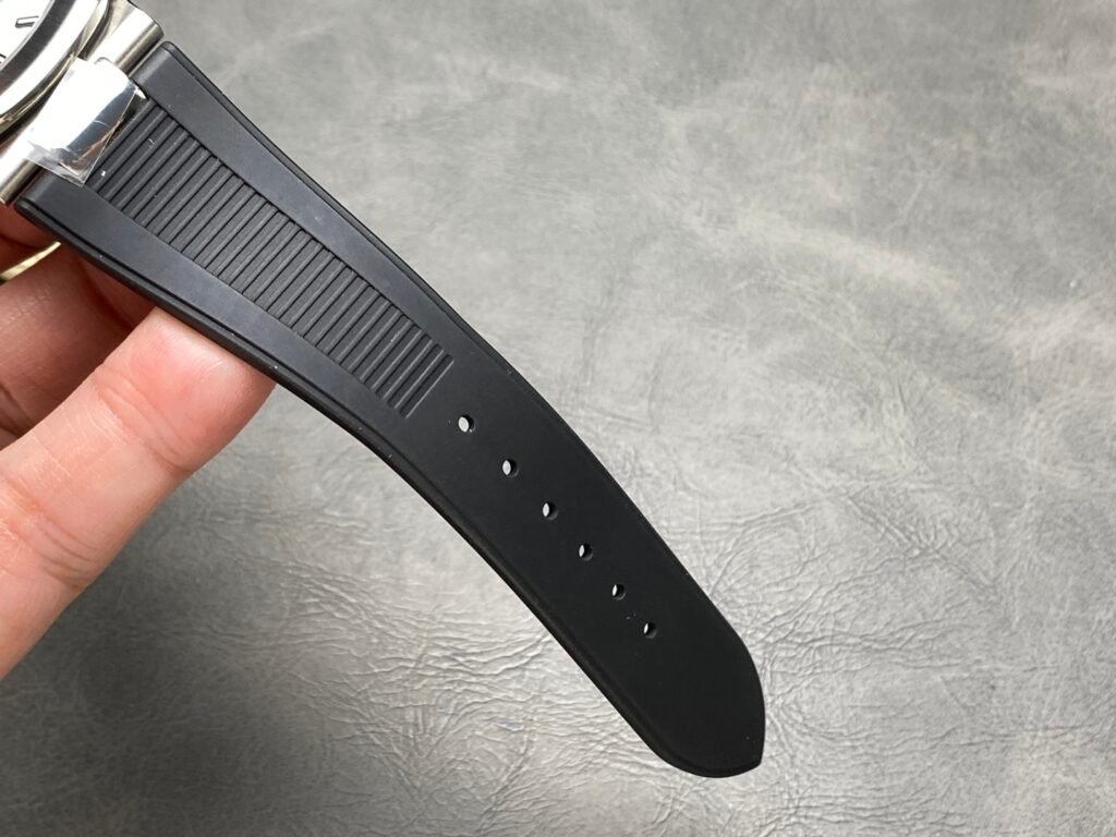 PP integrates all components into one module, and the balance wheel, gears, hairspring and other parts are all upgraded. The deck is made to the pinnacle of workmanship. All fonts are laser engraved, and the plywood is polished with Geneva stripes and decorated with fish scales, which increases the overall beauty and high-end feeling.