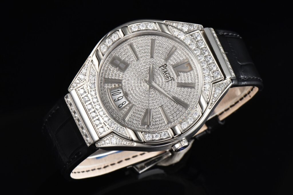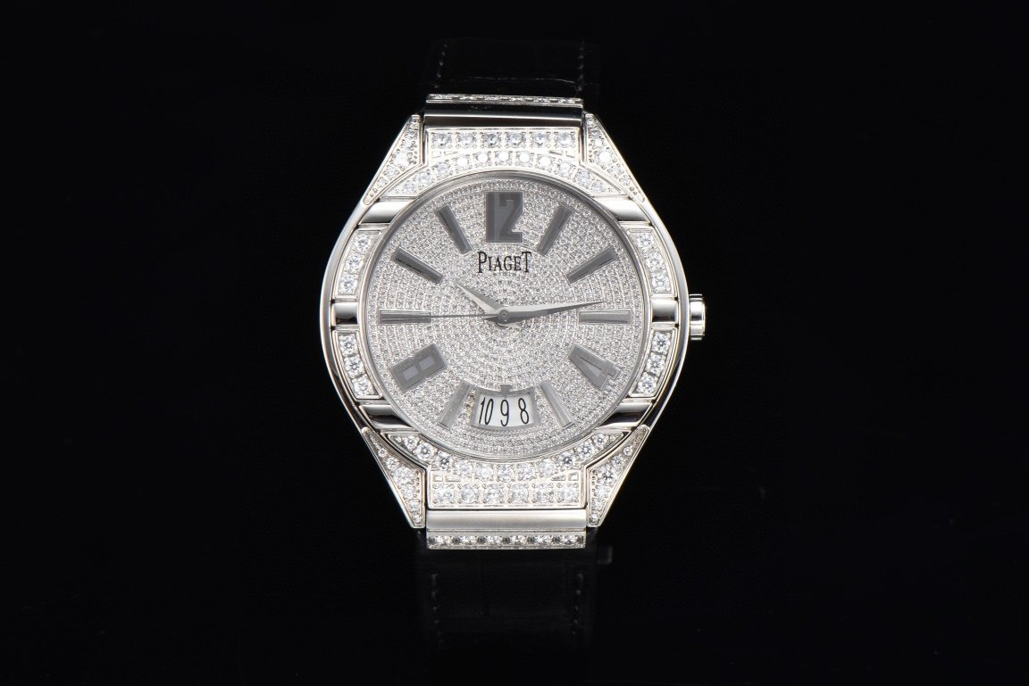 Extraordinary craftsmanship, encountering jewelry inspiration, challenging the limit of luxury—Piaget POLO series starry sky, shockingly launched. The watch uses a total of 564 top Swarovski diamonds, and the pillow-shaped case is plated with 18k real gold. Perfectly presenting the luxurious and brilliant style of the authentic product. [Case] The pillow-shaped case is matched with a slightly curved shoulder. Each finished case is carefully selected by QC inspectors and then processed by jewelry inlay. In order to achieve the original effect (neat, uniform inlay style). The 78 top artificial diamonds on the case must be completed by a jewelry inlay master in one go. [Dial] The valuable dial has a total of 486 top Swarovski. The size, cut and fire of the gems are strictly screened to ensure consistency. 12 fine scale marks are cut and formed by CNC, and then patiently polished by the watchmaker, and finally inlaid. [Movement] 9015 modified Piaget 800P movement, durable and stable quality. [Watch strap buckle] The embedded watch strap is closely connected to the watch shoulder, making the wearer feel more comfortable and fit. Exquisitely recommended men’s mechanical watches are carefully created for you to shoot ultra-realistic pictures