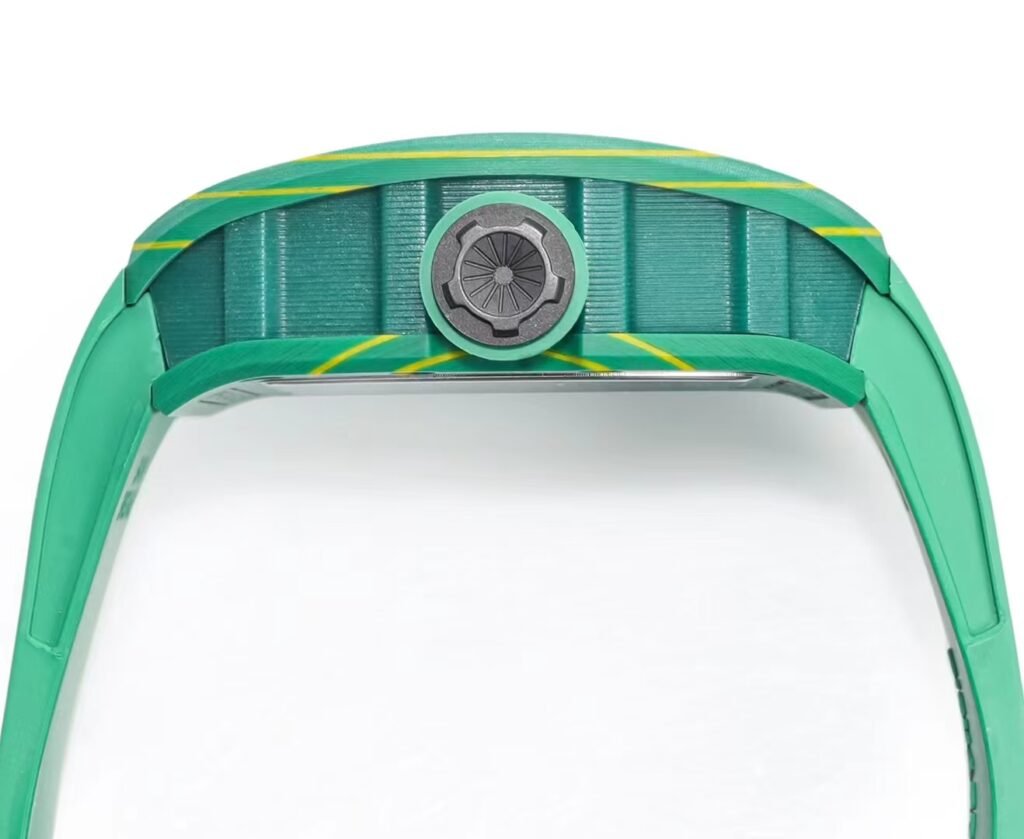 1 The case of the watch is a new interpretation of Richard Mille’s favorite barrel-shaped case, and it is also an innovative interpretation. The elongated shape between 2 and 5 o’clock on the case is amazing, which avoids the friction between the crown and the wrist and retains the excellent comfort of wearing.