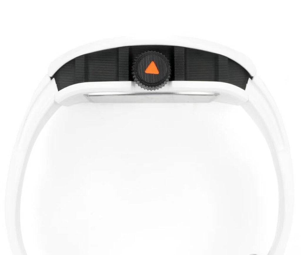 The watch is slightly deformed on the basis of the barrel-shaped case. The entire case is made of grade 5 titanium, with “NTPT” carbon fiber watch ring and black ceramic watch ring. The two arrow pointers have a natural and smooth arc outline, and the tourbillon structure is located at 6 o’clock on the dial.
