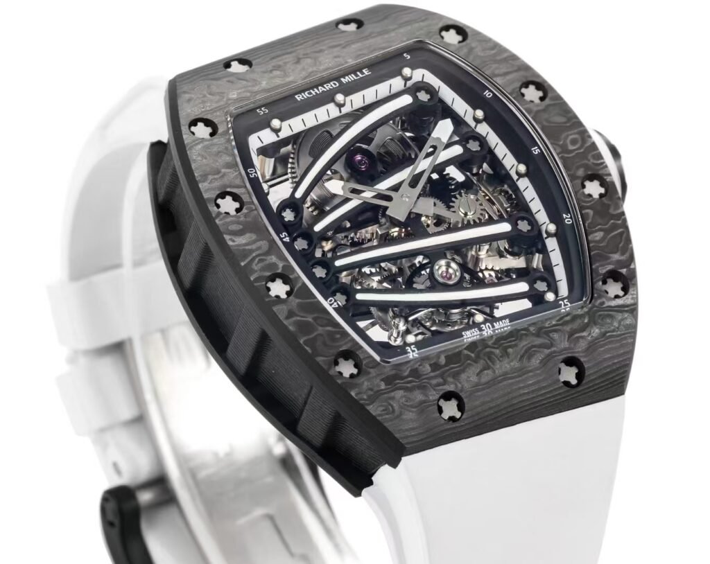 1 The case of the watch is a new interpretation of Richard Mille’s favorite barrel-shaped case, and it is also an innovative interpretation. The elongated shape between 2 and 5 o’clock on the case is amazing, which avoids the friction between the crown and the wrist and retains the excellent comfort of wearing.