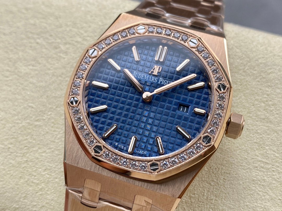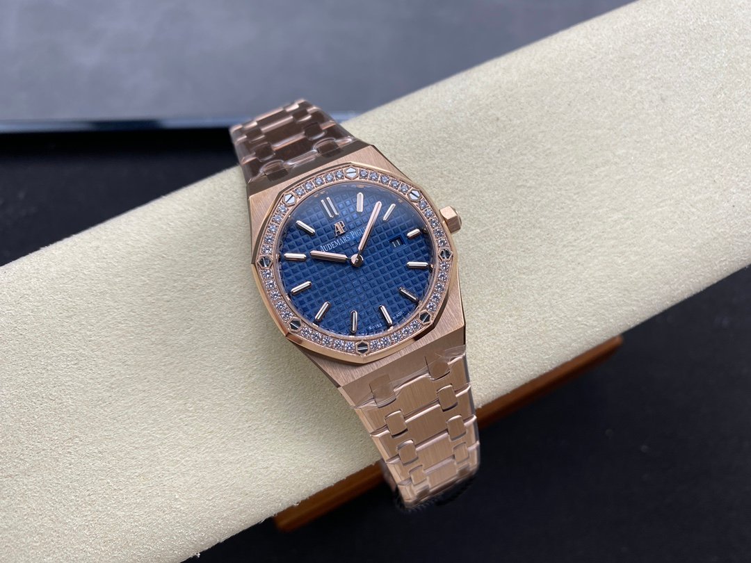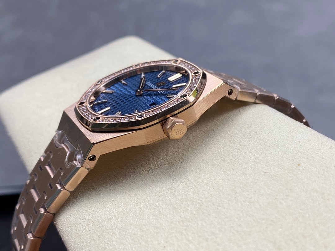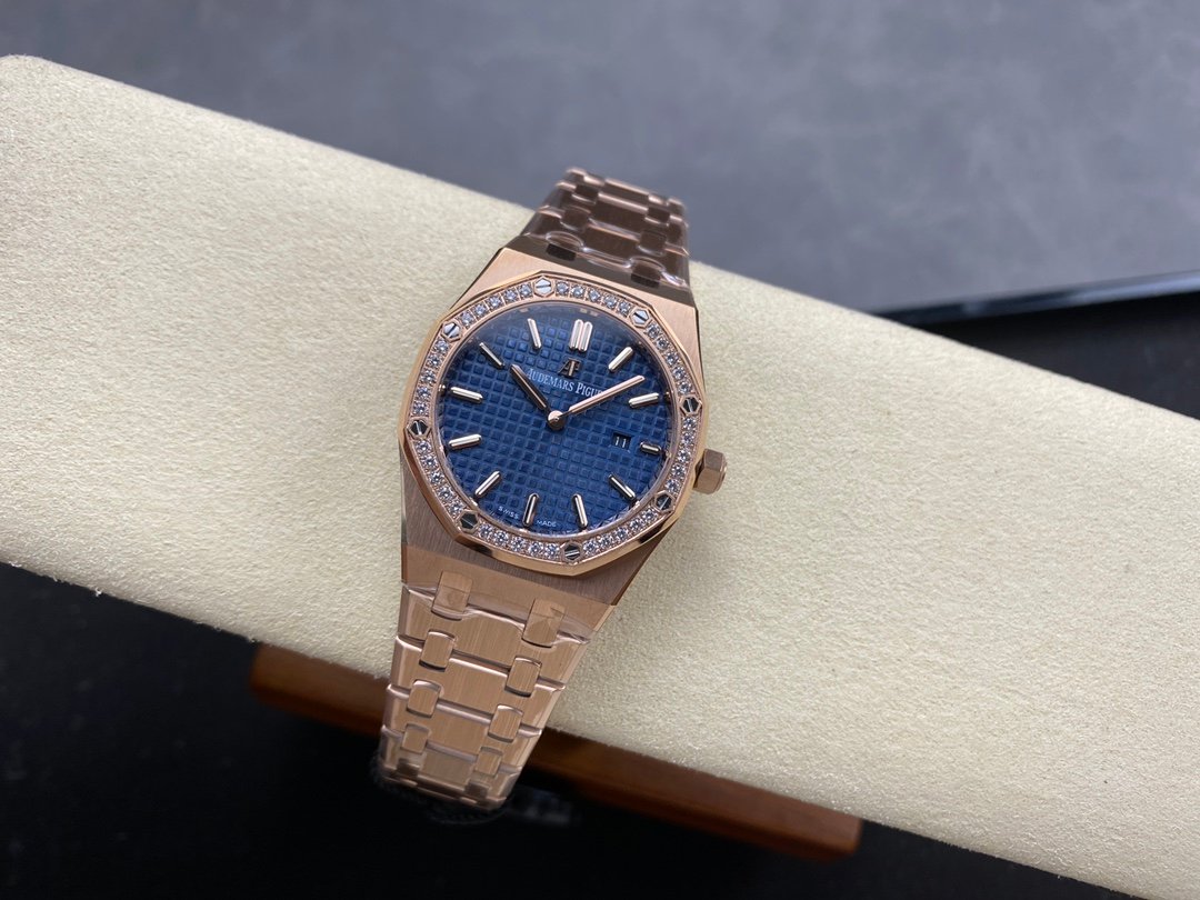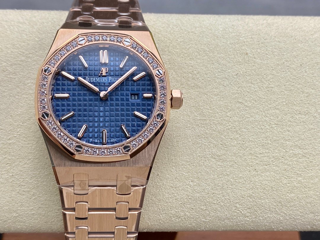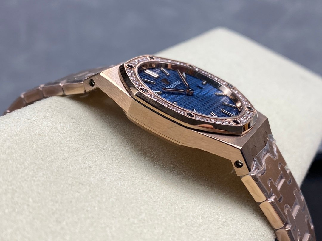 The genuine product is disassembled and molded, and the whole process is CNC polished. The version is adjusted many times, and the edges and corners are clear. The case diameter is 33MM, the polygonal bezel is precisely matched with the case, and the bezel is fixed to the case with hexagonal screws (the bezel is inlaid with exquisite Swarovski diamonds, which are dazzling). The strap links are exquisite and regular, and the links have been carefully polished hundreds of times to present a perfect texture. The folding clasp is easy to open and close, and easy to wear. The watch lugs are bent to ensure that the watch fits the wrist better.