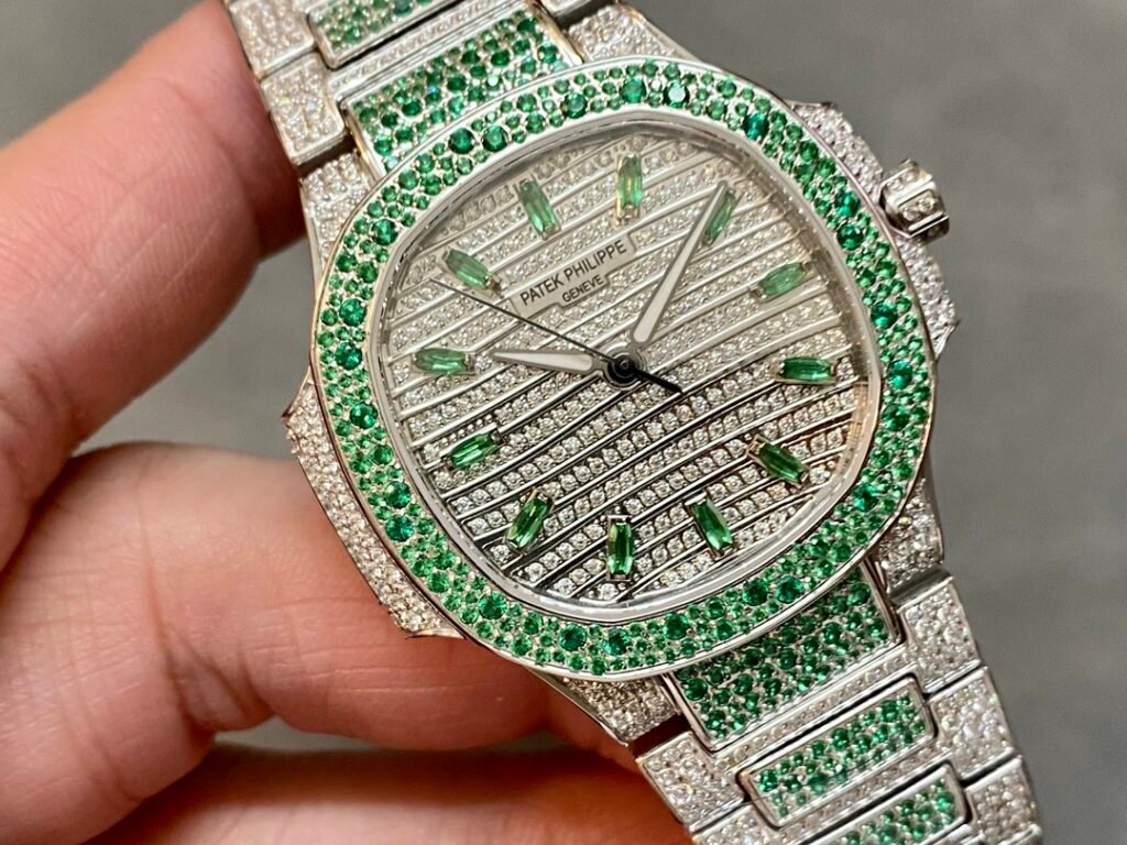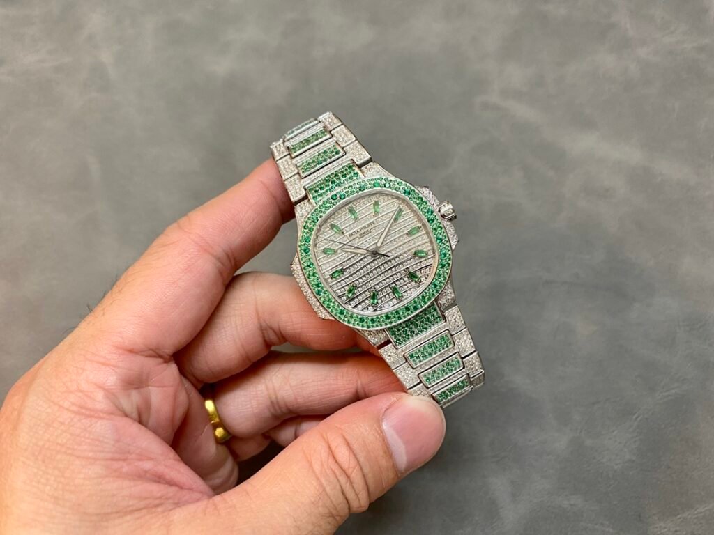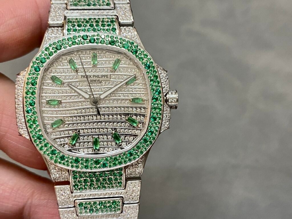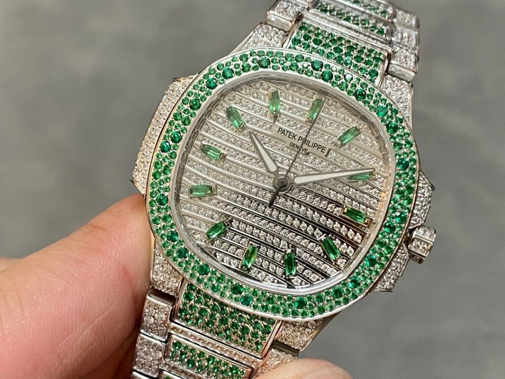 The starry sky female Nautilus has arrived! A classic timepiece made with a lot of money – Patek Philippe 7118 Women’s Nautilus Full Diamond Limited Edition Arrived in small quantities, three 7118 full brick watches are inlaid with rubies, sapphires, and emeralds in three different colors of gemstones, and are limited in supply (the whole body is made of eight hearts and eight arrows natural Opal rhinestones)
