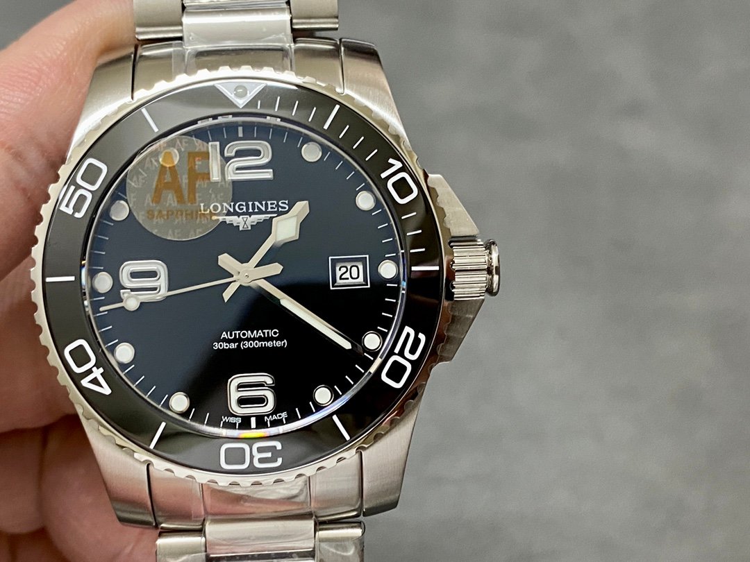 The king of cost-effectiveness – Longines Conquest, the water overlord, has come with glory. Cut through the waves and move forward courageously. It must be a fine product. [Case] ​​The watch size is 41X12mm. The 316L stainless steel case is flawless and the polishing process is superb, setting a new standard in the replica industry. The ceramic bezel has a high-quality texture of the authentic level, with the three-dimensional sense of the scale and the chamfer details. [Steel band] The texture and structure of each component of the detachable three-bead stainless steel band are synchronized with the authentic one, and the original lugs are customized. The head grain can be used with the authentic one. The pursuit of excellence shows the style of a large factory.