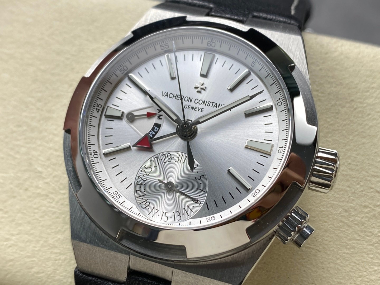 The top luxury classic steel case has smooth lines and delicate texture, which can be perfectly linked to the bracelet, the back strap is stamped with the Vacheron Constantin Maltese cross, the sunburst satin-brushed dial with velvety smooth edges, showing a deep or agile brilliance with changes in light and angle, equipped with an original movement, the function is completely identical, which can ensure a 48-hour power reserve, and the launch of four quick-release straps is easy to disassemble. The diversified options of advance and retreat are to give the invincible commuting all over the world, the steel belt is hard, and the tape is lightweight. Combining athleisure and business, it is a high-end watch that combines exquisite appearance with excellent functionality.