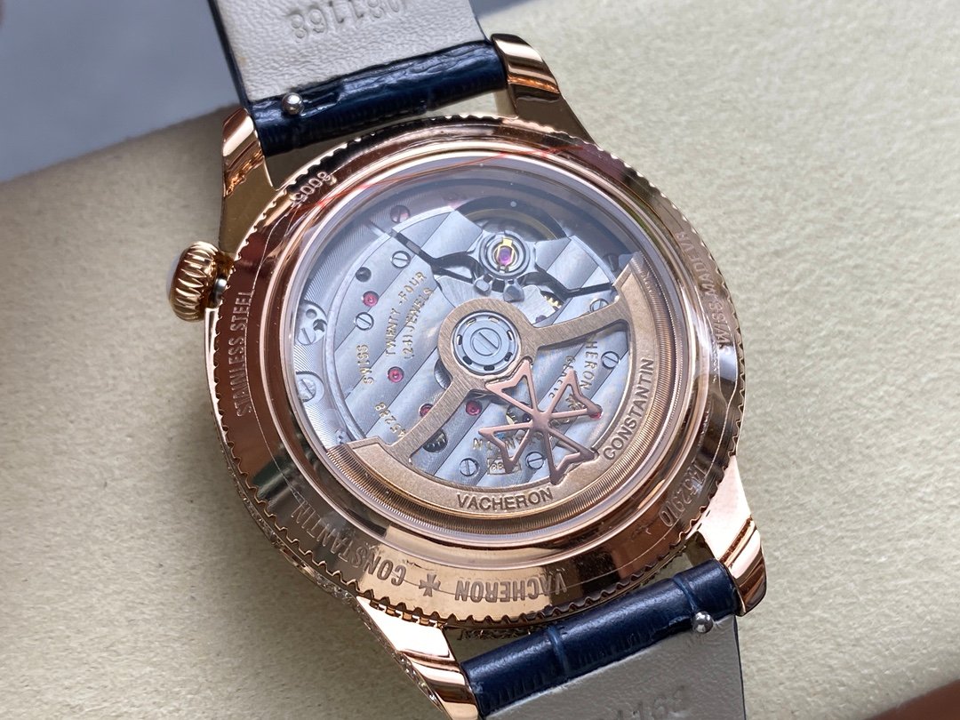 The ultra-thin mechanical women’s watch continues the collection! The new opaline dial is adorned with sparkling diamonds and the ruffles have been fine-tuned over several months using the traditional “tapestry” technique.⚠️ The crown is adorned with a curved-cut moonstone symbolising calm and serenity, the oblate shape is official, and the off-centre round dial with sparkling diamonds shows the time in a dreamlike way.⚠️ The moon phase model (8005F/000R) is beautifully carved into white clouds of mother-of-pearl bricks.Equipped with an automatic movement that perfectly captures the moon phases, it is elegant and luxurious for the female connoisseur. Vacheron Constantin ÉGÉRIE collection, you deserve it.