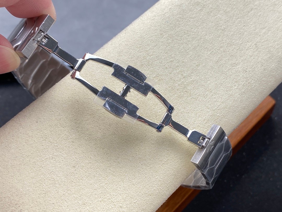 The on-trend money-style tonneau-shaped case with the Maltese cross embellished at 5 o’clock gives it an understated and exclusive atmosphere, while the integrated hexagonal central link and semi-domed stainless steel bracelet are integrated.