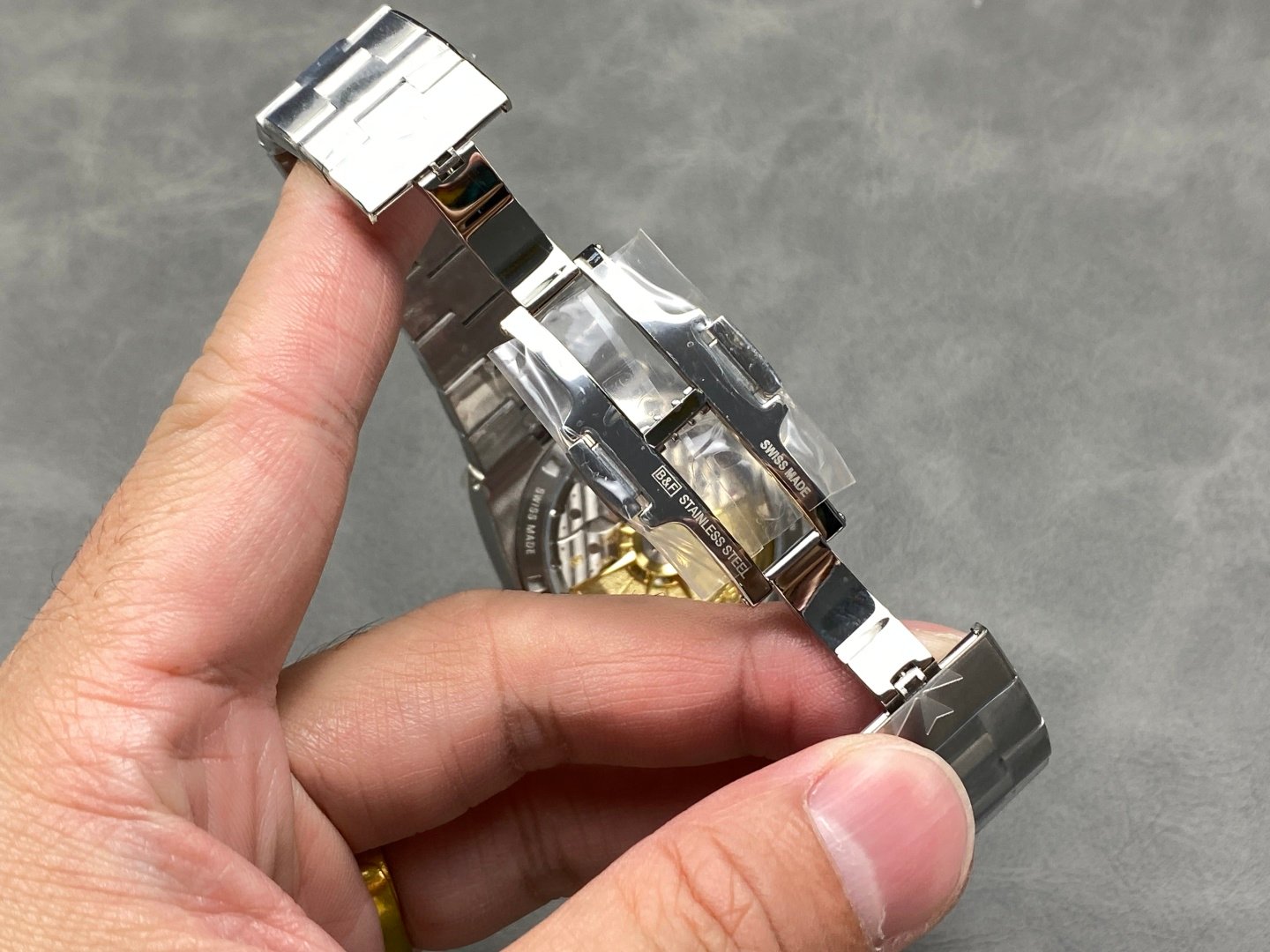 created in 10 months stainless steel case, sapphire crystal case back, stainless steel buckle, water-resistant to 150 metres. Last but not least, we must praise the new “Interchangeable Strap System”; the new Overseas only needs to flick a small stroke between the strap and the lugs to change the strap, each of which can be selected with a steel strap or a belt, truly achieving a 1:1 replica.