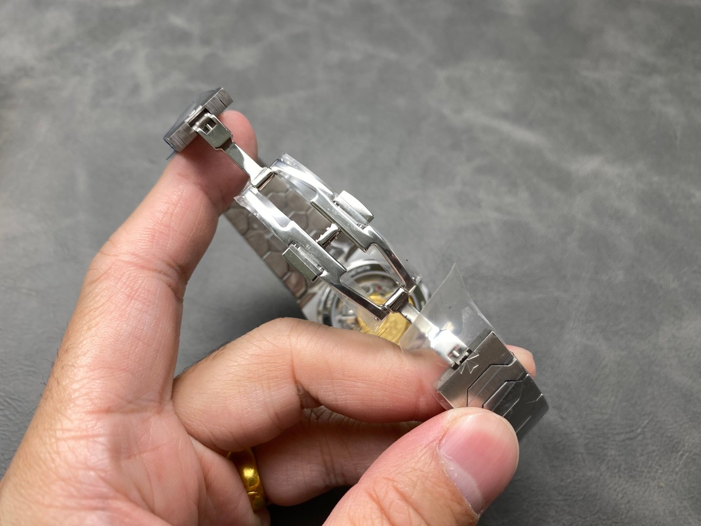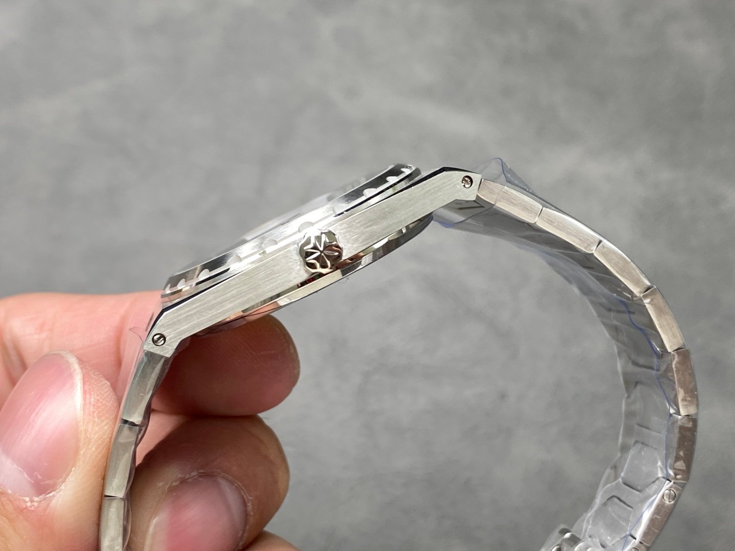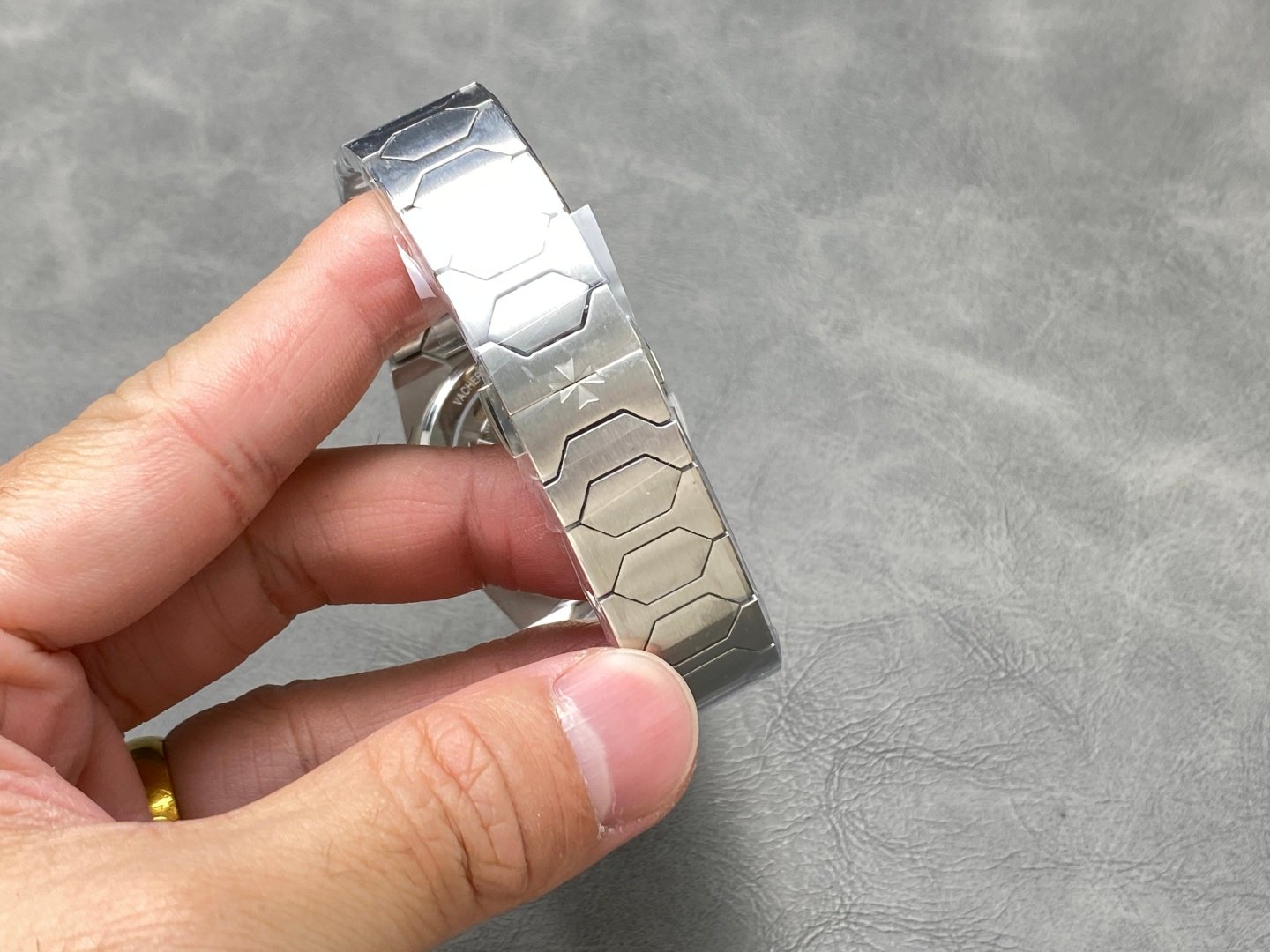 Case: The tonneau-shaped three-part structure makes the whole not small, and the fluted bezel with the Maltese cross at 5 o’clock gives it a sense of prestige Dial: Gold. Rose gold. Brushed silver and brushed grey are combined with brushed metallic bar indexes and baton hands with luminescent coating, retaining the most classic second hand Movement: The same movement imported from Switzerland. From the splint to the steel wheel and other parts are delicately decorated, the automatic pendulum is plated with 22K gold and engraved with 222 fonts Strap: An integrated hexagonal central link gives the watch an angular and timeless elegance.
